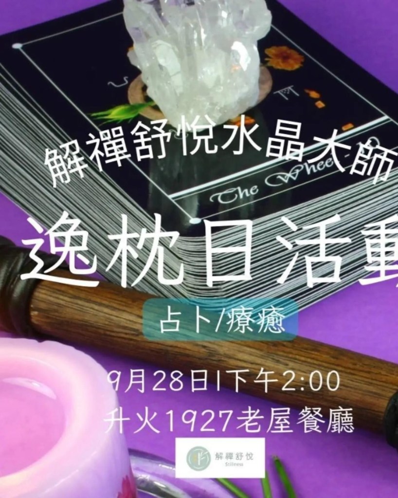 解禪舒悅水晶大師 vs. 升火1927老屋餐廳 解禪舒悅水晶大師 vs. 升火1927老屋餐廳 生活沒有絕望,只有想不通人生沒有盡頭,只有看不透快樂是心的愉悅,幸福是心的滿足,不和別人比較,不和自己計較,人生不是一場物質的盛宴,而是一次次靈魂的修煉。今日解禪舒悅。心靈療癒集結了多位水晶療癒、水晶占卜大師來到『升火1927老屋餐廳』逸枕日,一起服務人們,提供不同的管道與方法來給出不同的風景。 分享此文: 分享到 X(在新視窗中開啟) X 分享到 Facebook(在新視窗中開啟) Facebook 喜歡 正在載入...